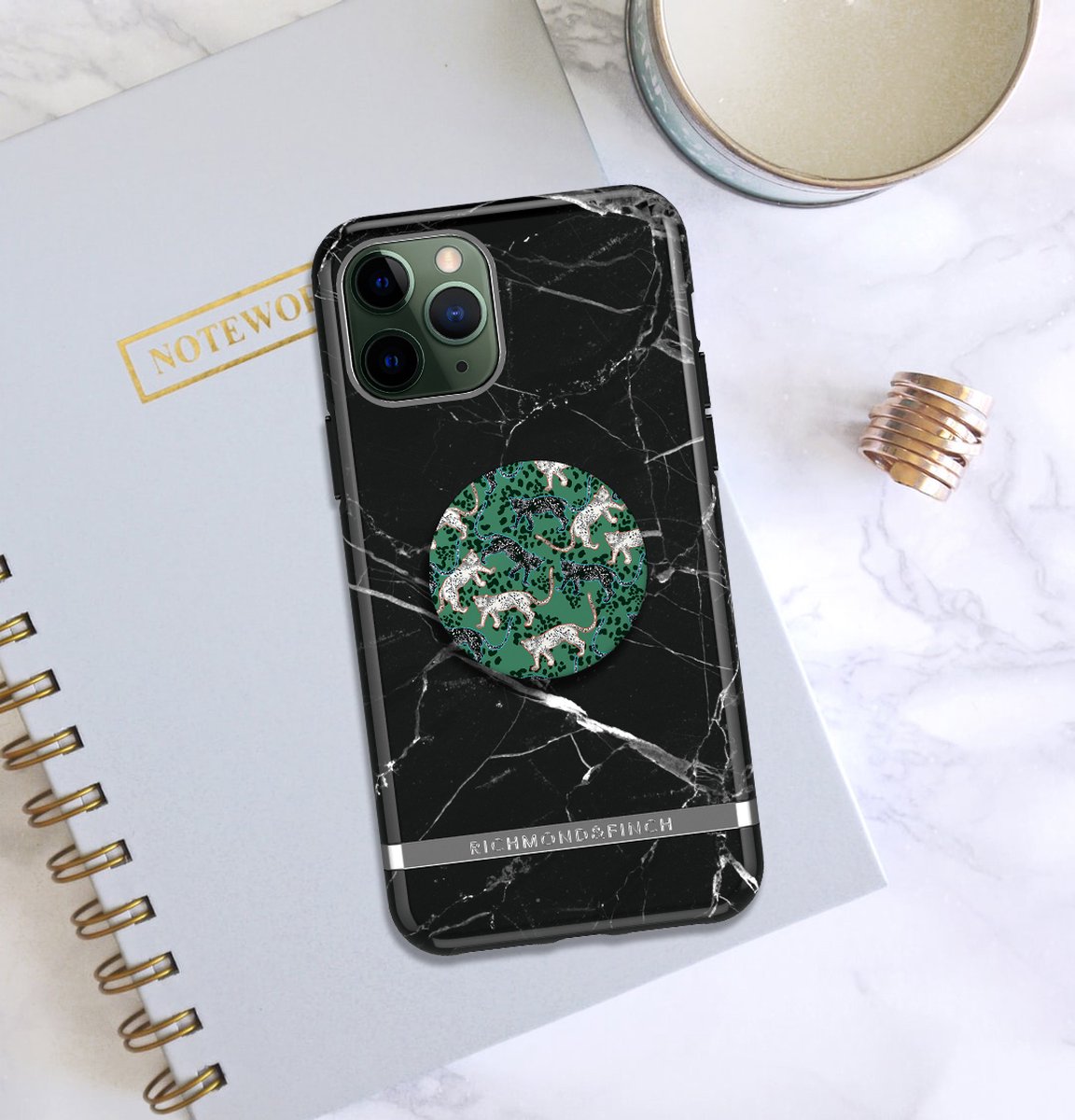 Richmond & Finch X PopSockets zijn multifunctionele gadgets voor uw smartphone, tablet, action cam of draagbare gameconsole. Deze plakker is in verschillende kleuren en prints verkrijgbaar en helpt om beter grip te krijgen op uw apparaat. Daarbij is een PopSocket ook een standaard, zodat u uw telefoon of tablet kunt neerzetten om bijvoorbeeld uw favoriete series te kijken. Bij het maken van een foto of selfie is